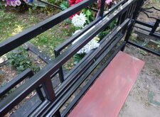 Последовательность работы стандартная. Во-первых, сжечь старую краску, во-вторых, зачистить ограду до металла, после покрыть грунтом чистый металл и покрасить черной краской. После покраски убраться на могиле. Далее на фото обожженная краска на ограде.